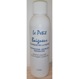 Chlore liquide 20 litres Hypochlorite de sodium 38° avec 15% de chlore actif. Le chlore liquide désinfecte l'eau de votre piscine. Il détruit les germes présents dans l'eau tel que les virus, les bactéries, la mousses et les autres champignons apportés par les baigneurs et l'environnement.